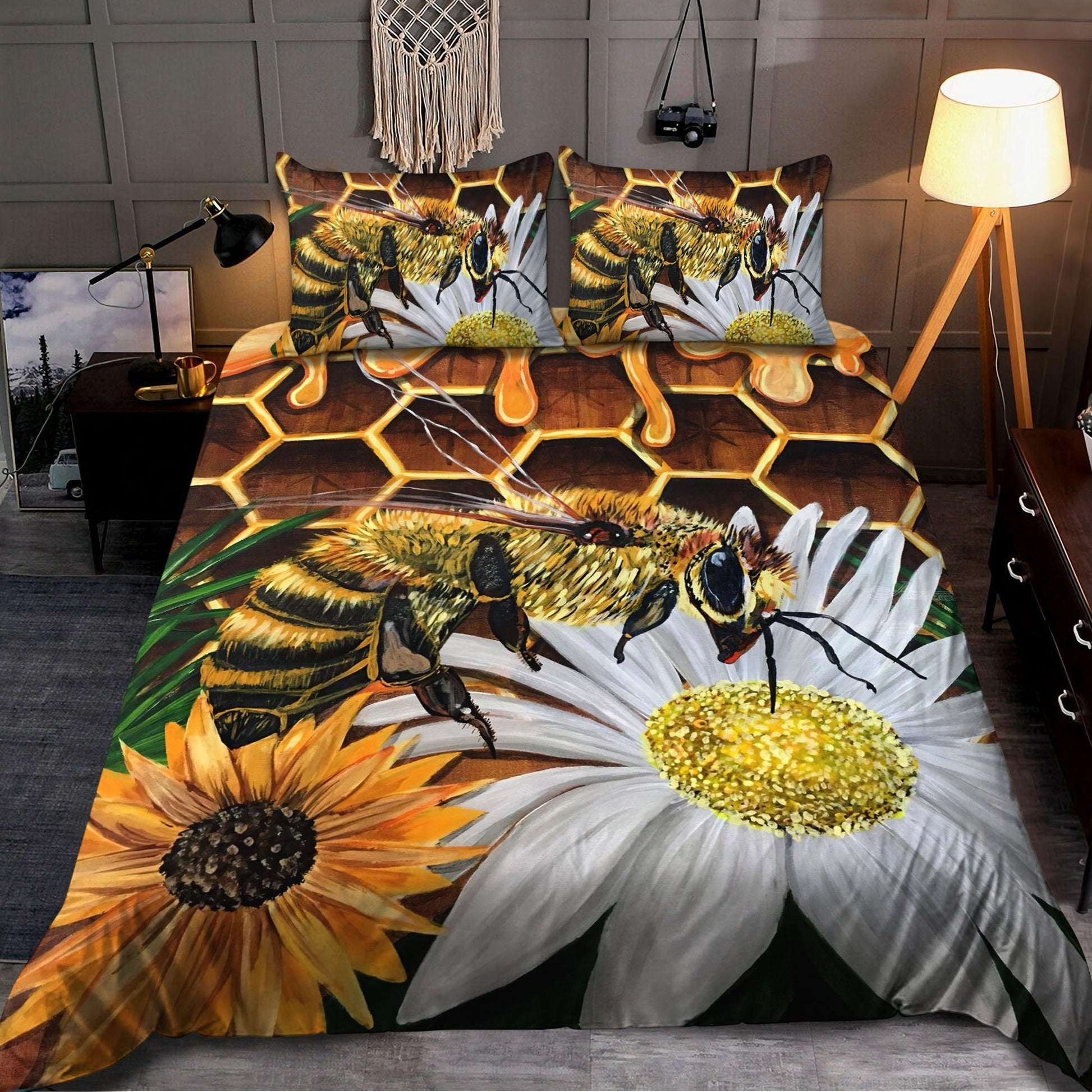 All Over Printed Bee And Flower Bedding Set MEI