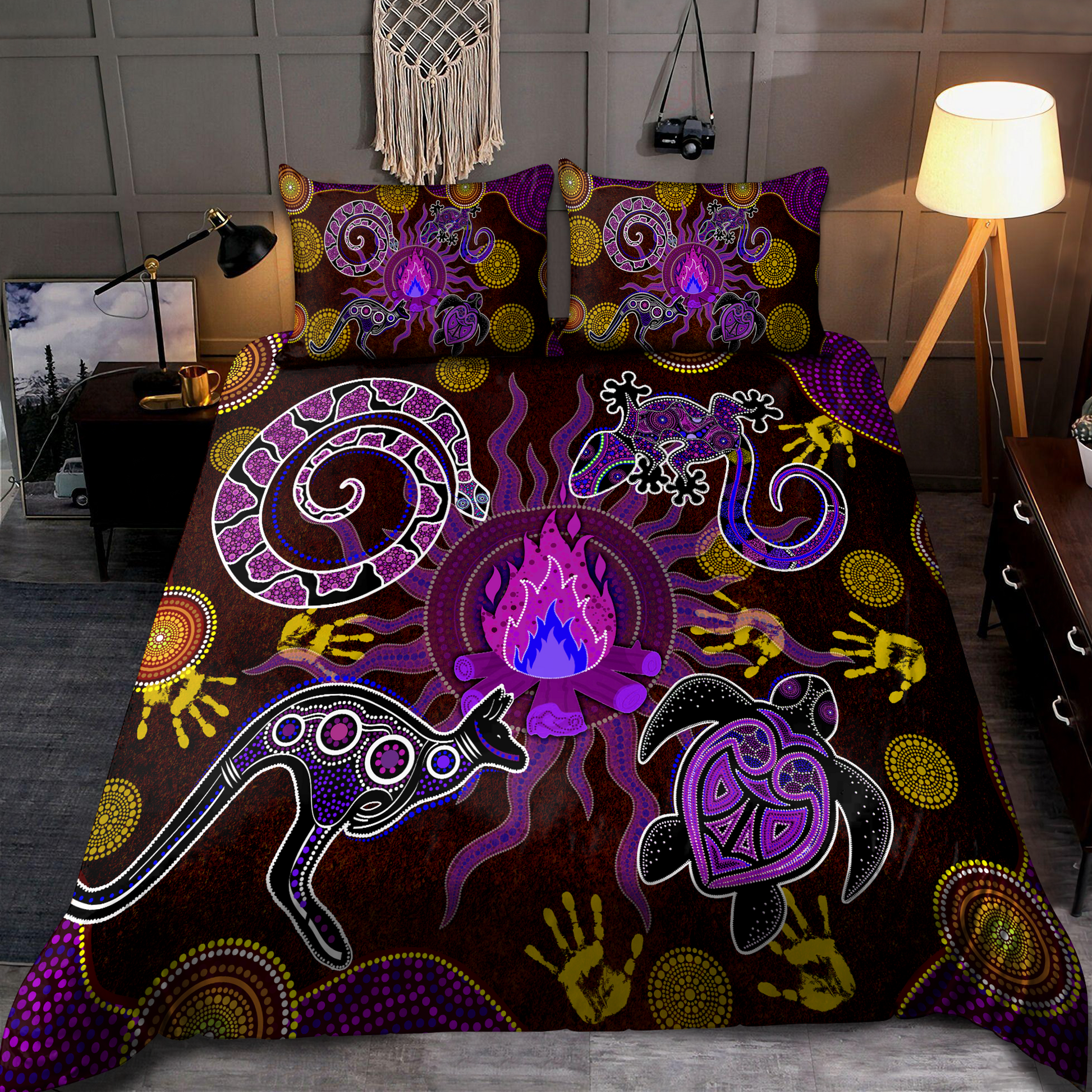 Aboriginal Dancing around the campfire Stories Purple Bedding set