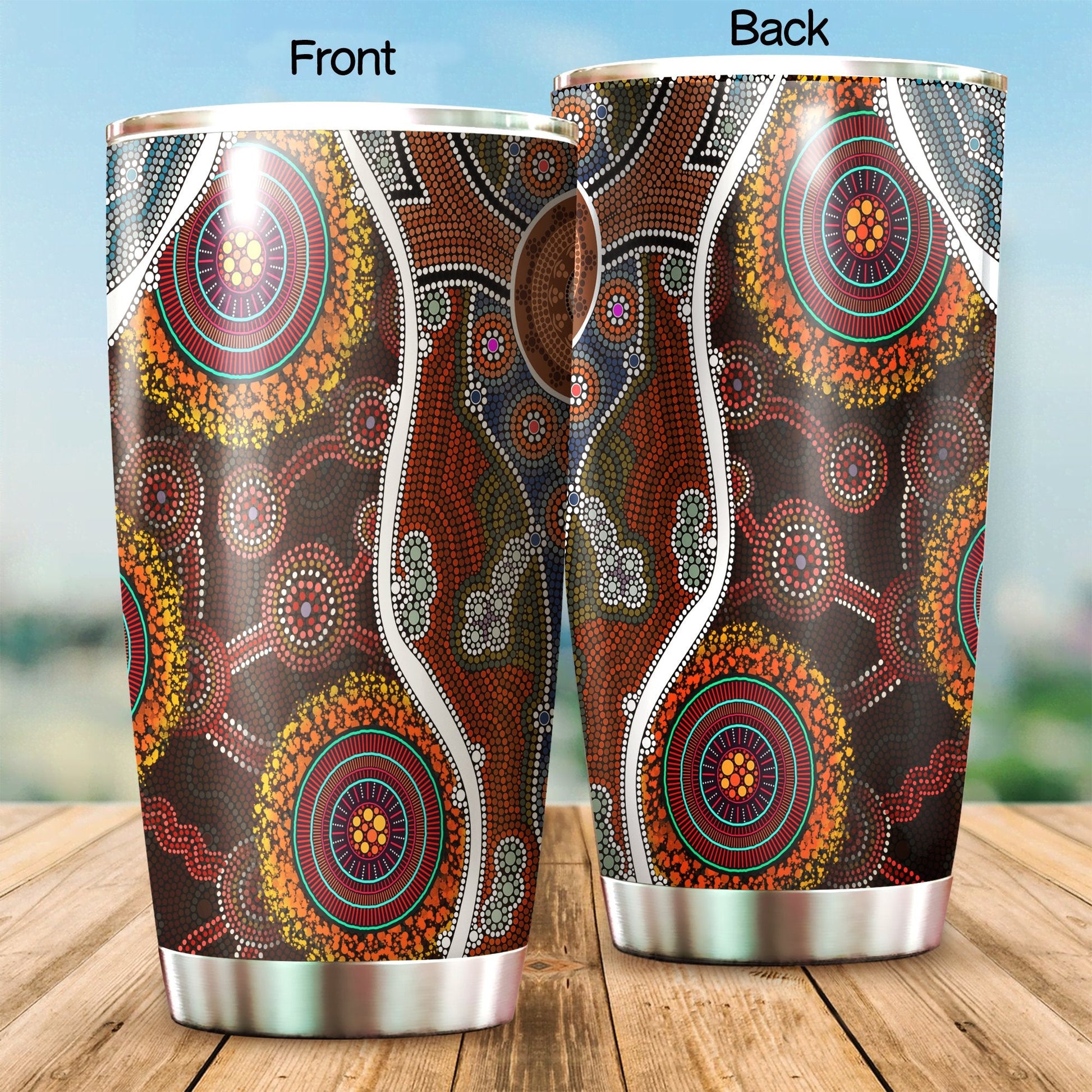 Aboriginal Decors Australian Gifts Brown Circle Dots Stainless Steel Tumbler 20Oz