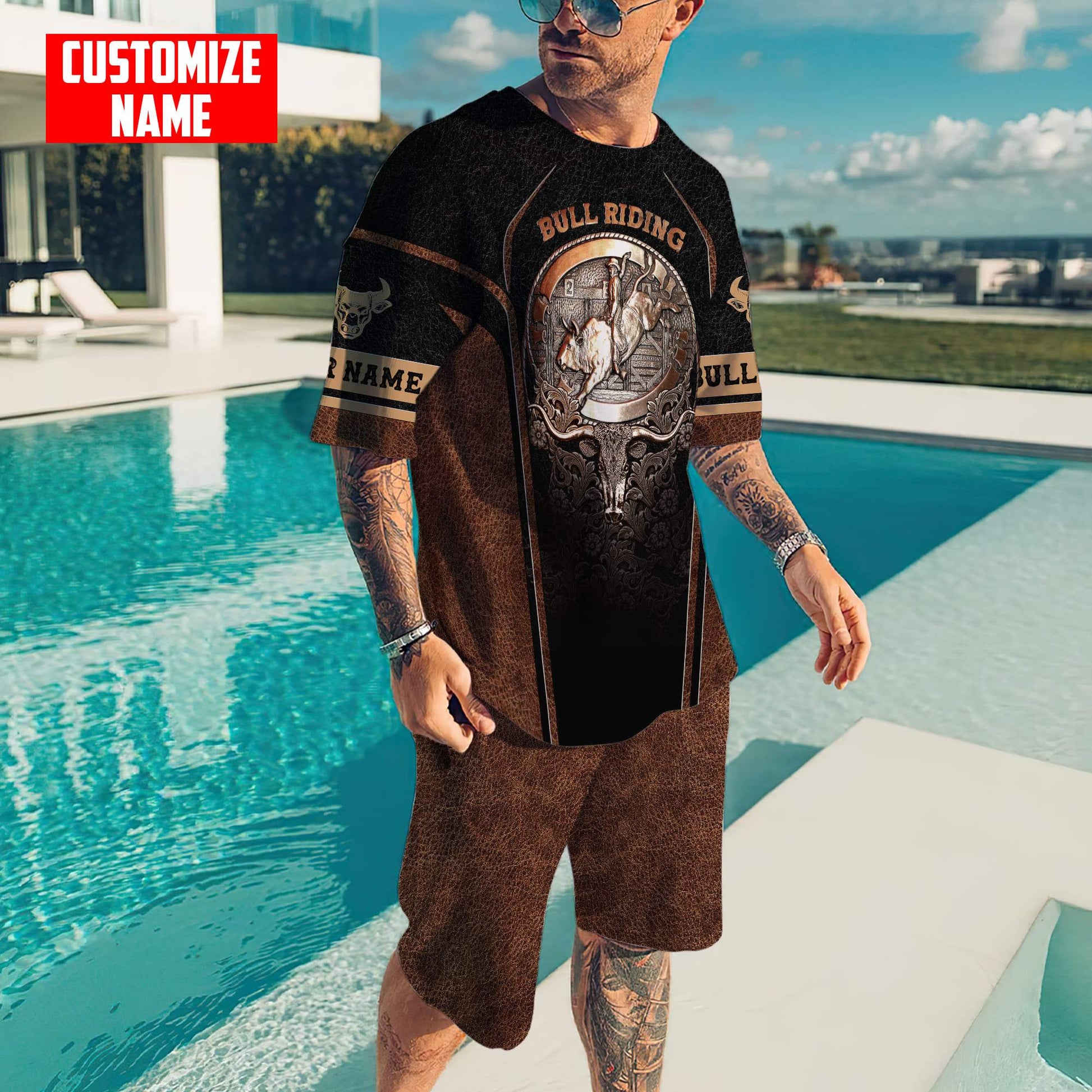 Tmarc Tee Personalized Name Bull Riding Metal Logo 3D All Over Printed Unisex Shirts