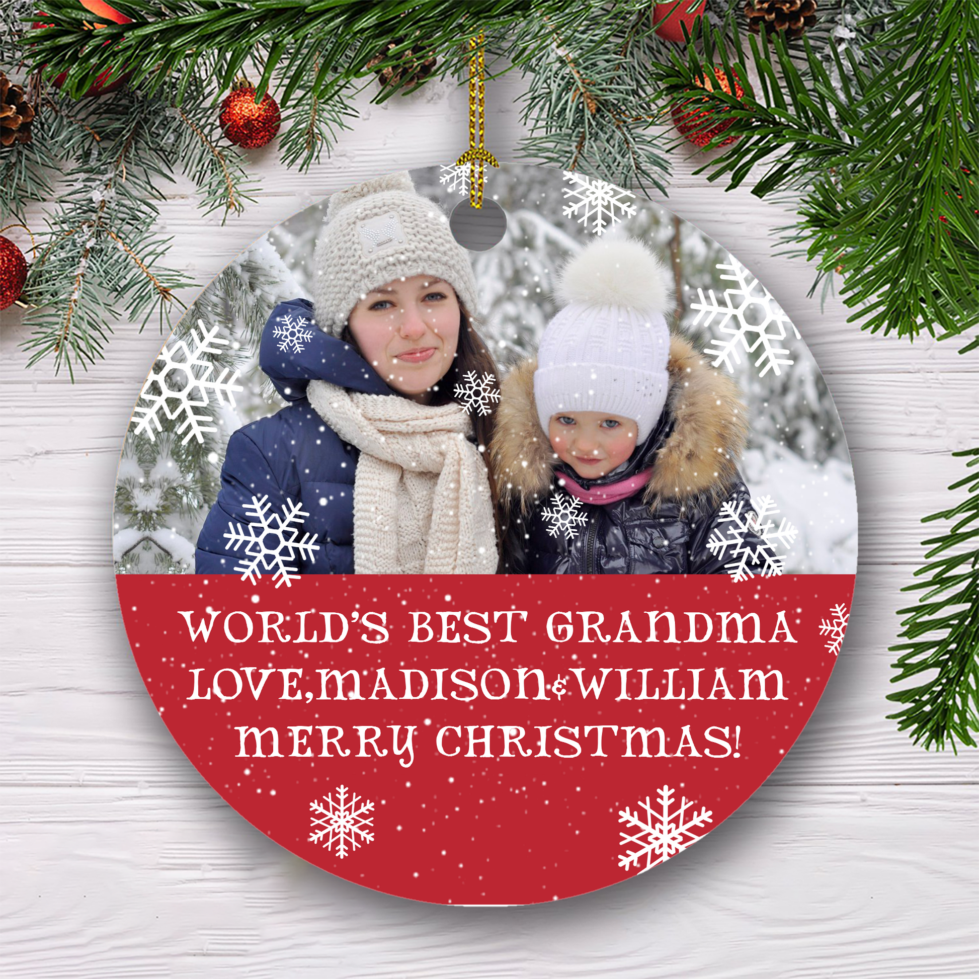 World's Best Grandma Love Merry Christmas Customized Photo Ornament, Christmas Gifts For Family